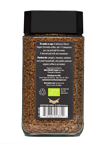 Mount Hagen Organic Fair Trade Freeze Dried Instant Coffee 3.53 oz Kosher Award-Winning Single-Origin 100% Arabica