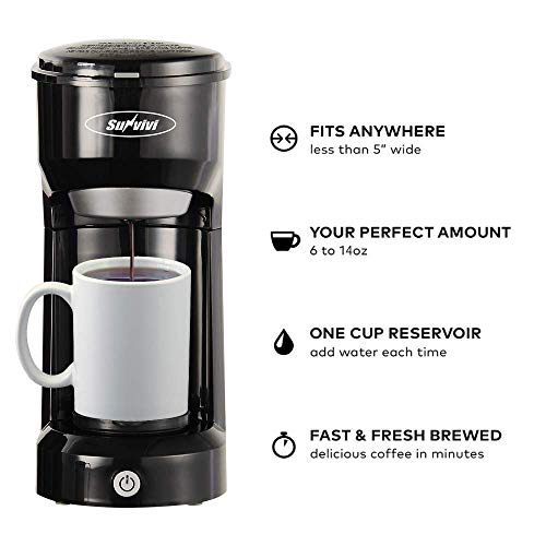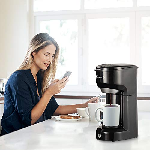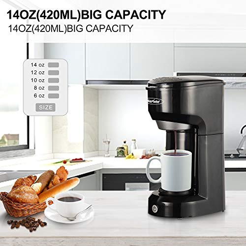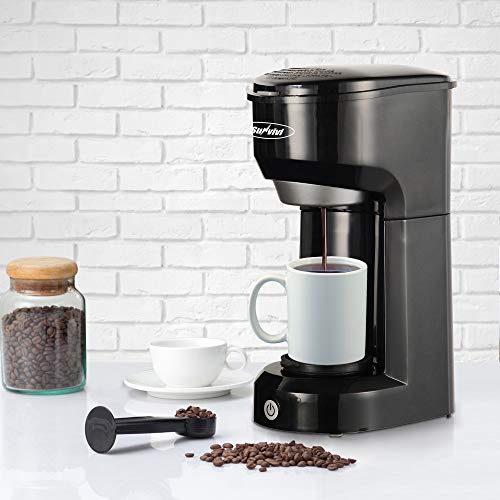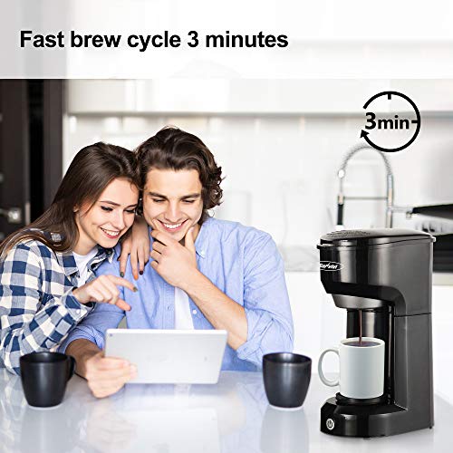 【1-BUTTON CONTROL& AUTO SHUT-OFF FUNCTION】Simple one-touch button makes it easy to brew your favorite coffee. Preparing ground coffee or k-cup capsules/pods, add water, press button, then auto shut-off after brewing, which ensures safety. Powerful 1000W fast brew technology ensures coffee brews quickly and at the perfect temperature just in a matter of minutes.