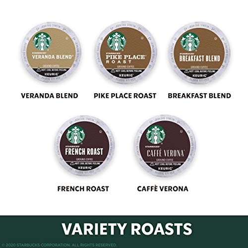 The Starbucks Black Coffee Variety Pack includes French Roast, Caffè Verona, Pike Place Roast, Breakfast Blend and Veranda Blend