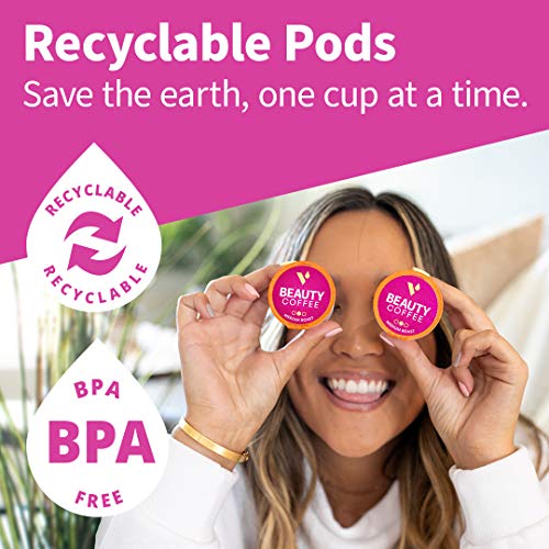 Collagen Coffee Pods by VitaCup, Beauty Coffee w/ Biotin and B Vitamins in Recyclable Single Serve Pod Compatible with K…